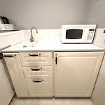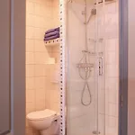Rummen har sitthörna och mathörna samt skrivbord för gästernas bekvämlighet. Det finns en separat toalett och en dusch, tillsammans med hårtorkar och handdukar. Du kan njuta av utsikten över trädgården.